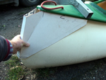 The mast support floor may have to be tapered and trimmed to fit your canoe. It fits below the front crossmember on the floor of the canoe to allow the bracing and mast step to be secure. I had to pack with foam sheet (more buoyancy) to bring the floor up to the height of the stringer to which the ply was screwed. A small piece of ply about 200x40mm is used to pack the front of the mast at the upper mast saddle. This compensates for the thickness of the bracing and provides a little rake (backward tilt) to the mast which improves performance.
