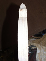 The ply laminations give a good set of “contour lines” to help you plane all surfaces symmetrically and evenly. Repeat the operation for the other five corners (don't forget the bottom taper) to produce a roughly streamlined shape. After completing the planning refine the shape using an orbital sander to produce a smooth curve as shown. Again use the laminations as a guide comparing each side of the rudder/leeboard.