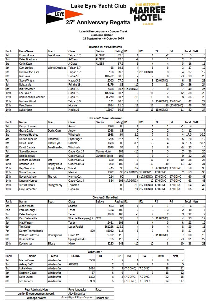 Lake Eyre Yacht Club 25th Anniversary Regatta