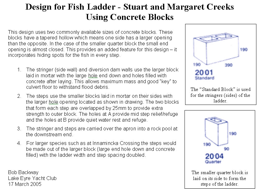 The Lake Eyre Yacht Club (and the desert fish) would like to thank the South Australian Department of Transport for the construction of these fish ladders.