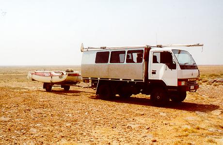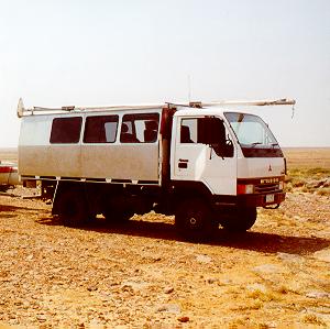 The Commodore's "go anywhere" vehicle - a Canter 4WD truck with camper on tray